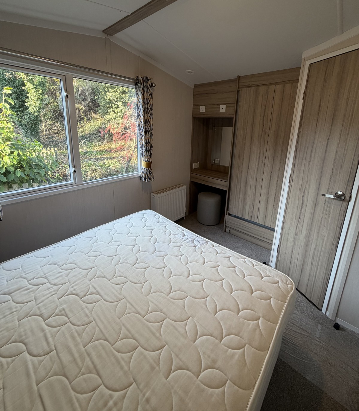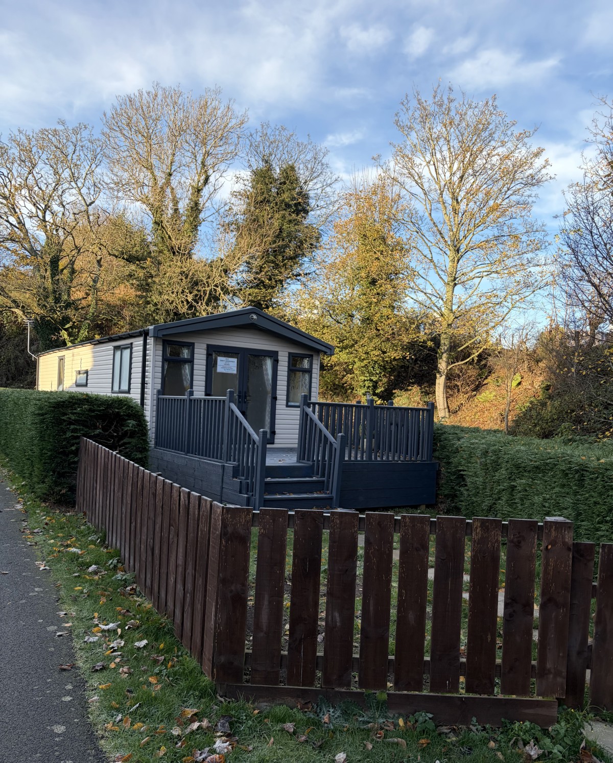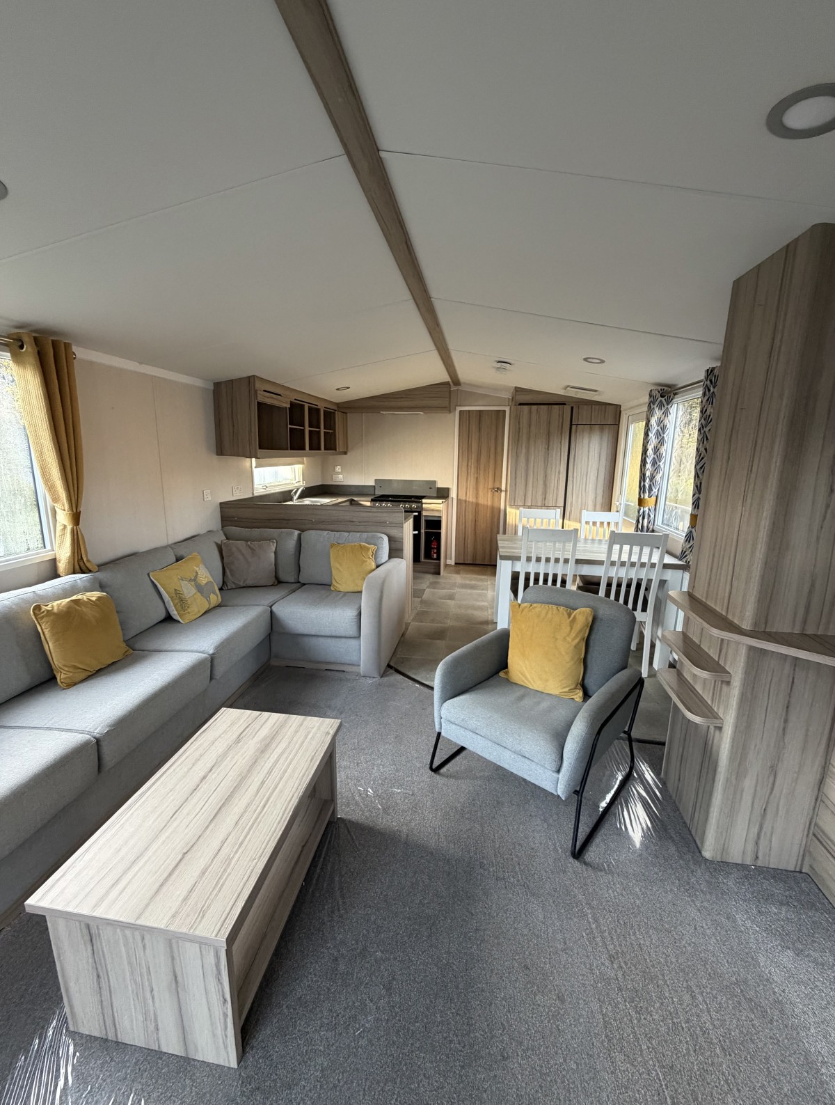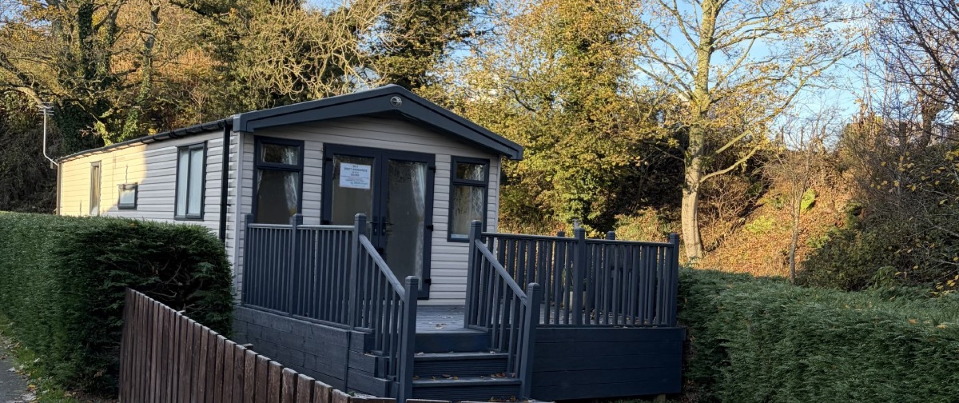 Specifications: Double glazing, fully insured , central heating, fusion galvanised chassis with environmentally exterior wood grain textured sandy beige aluminium cladding.